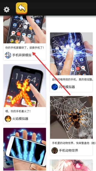 在游戏列表里找到《被破碎的恶作剧》,进入游戏后选择“手机碎屏模拟”模式,开启整蛊功能,就能模拟出手机屏幕碎裂的效果。