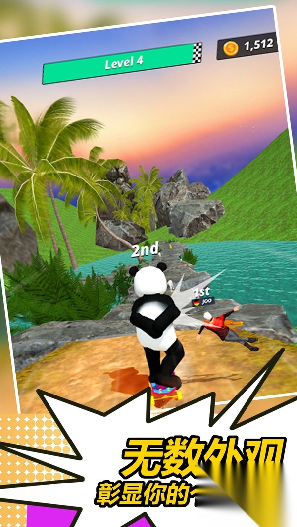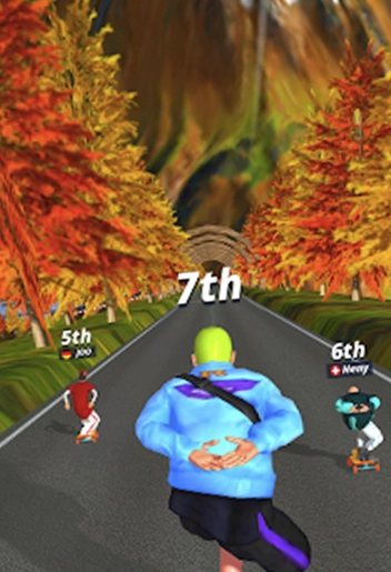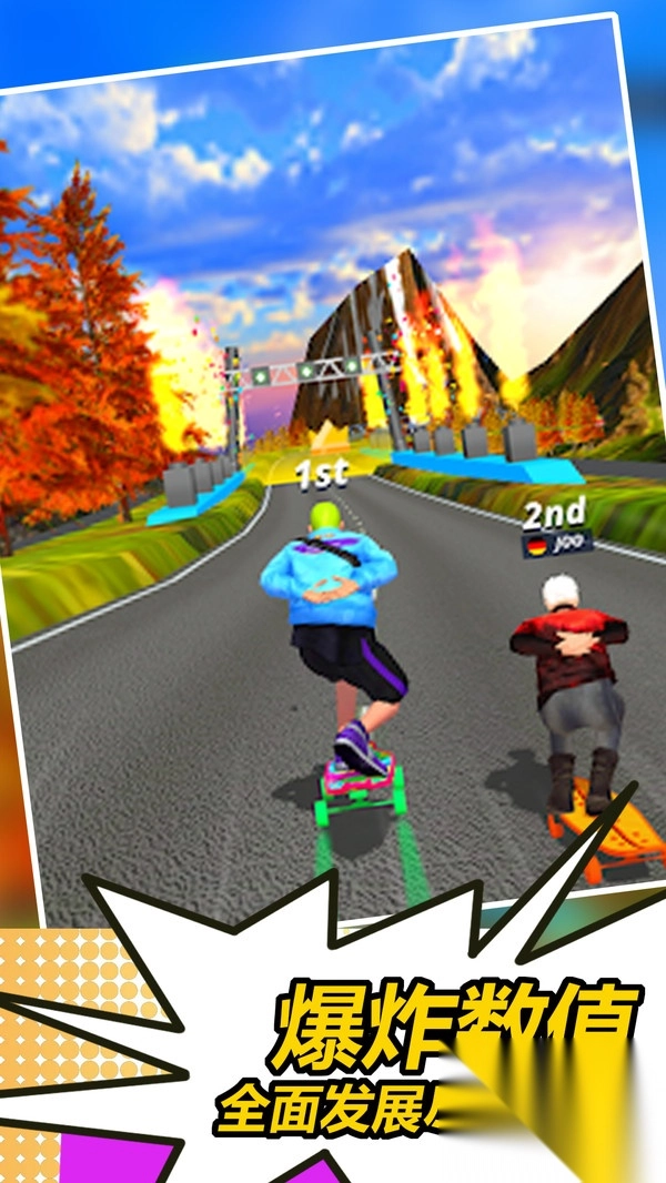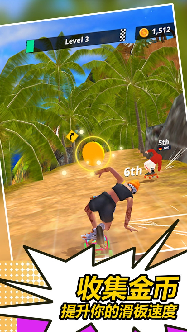 在赛道上收集金币与特殊资源,这些资源可用于在商店兑换新的滑板外观、角色皮肤,同时也能用来提升角色的能力属性。