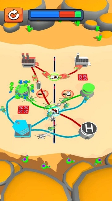 烧脑连接救救士兵巧妙融合策略解谜与军事题材,带来别具一格的益智体验。看似简单的划线操作实则需要深度思考,每一个救援任务都极具挑战性。清新明快的画风配上轻松欢快的音效,让解谜过程乐趣十足。现在就拿起你的战术笔,指挥士兵们突出重围,尽情展现你的军事谋略吧!还有多种难度模式等待你去征服。