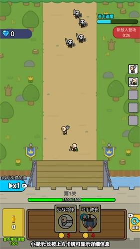 游戏右上方会显示当前的关卡进度以及下一波敌人的出现时间,方便玩家提前做好准备。