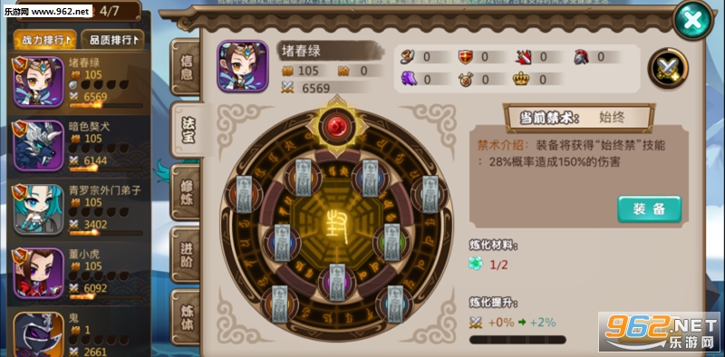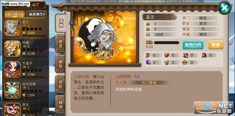 、修炼、进阶等功能操作。玩家可根据情况,合理调配角色