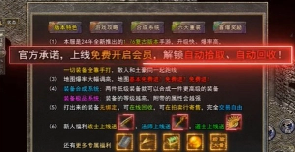 良心福利全天开放,24小时不间断免费开服,玩家上线就能领取丰厚奖励。