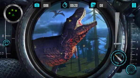游戏运用动态物理引擎,子弹的弹道会受到风力和距离的影响,玩家需要精准计算射击角度。恐龙配备智能AI,受伤后会改变行动模式,从而提升狩猎的挑战性。