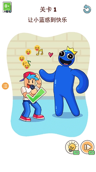 关卡里设有特殊的提示按钮,要是你碰到实在过不了的关卡,就可以用它来完成对应的任务。