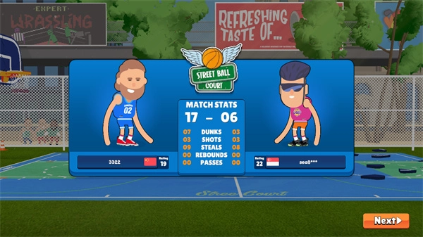 全球实时对战系统:两人对抗模式可匹配全球玩家,实时开启扣篮对决,凭借操作与策略的比拼,展现灌篮技巧与反应速度。