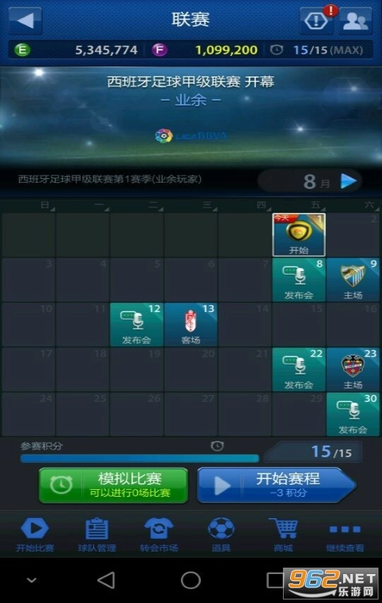 进入联赛主界面后,你既可以用自动比赛券来进行模拟比赛,也能通过消耗精力值参与联赛。
