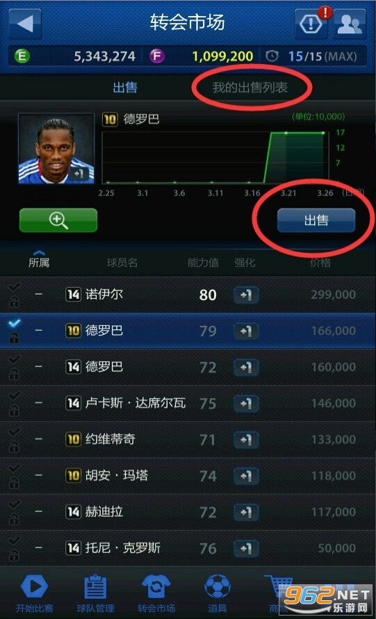 球员出售界面主要具备球员出售与信息查看等功能。