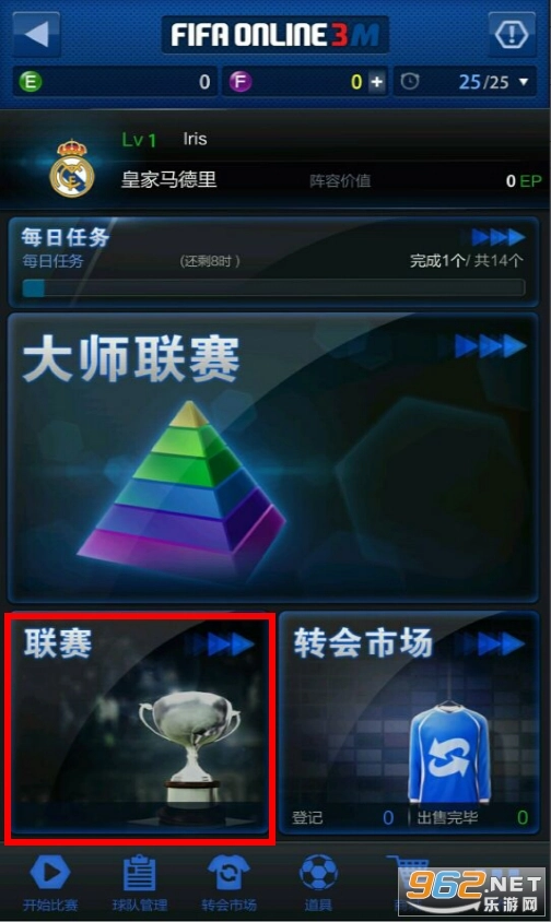 点击游戏主界面的联赛按钮,就能进入联赛模式。