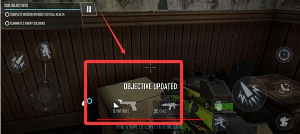 拾取枪械后我们需要按照指引去消灭前方敌人。
