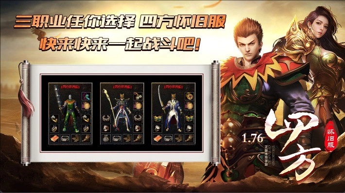 四方怀旧服是一款充满热血的复古传奇冒险游戏。它以高清画面重现传奇世界的精彩魅力,经典三职业搭配多流派的设定与玩法,拓宽了职业发展路径,让玩家体验更趋多元。畅快的打击手感使每一场战斗都极具震撼力,全屏爆装的设定也让挑战BOSS的战斗更具吸引力。不断升级你的武器装备,凭借更豪华的装备去挑战顶尖玩家或极品BOSS,在激烈战斗中证明自身的价值!