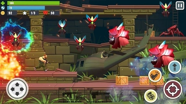各种挑战你的场景,许多帮助你成功通过关卡的道具和武器将下降;