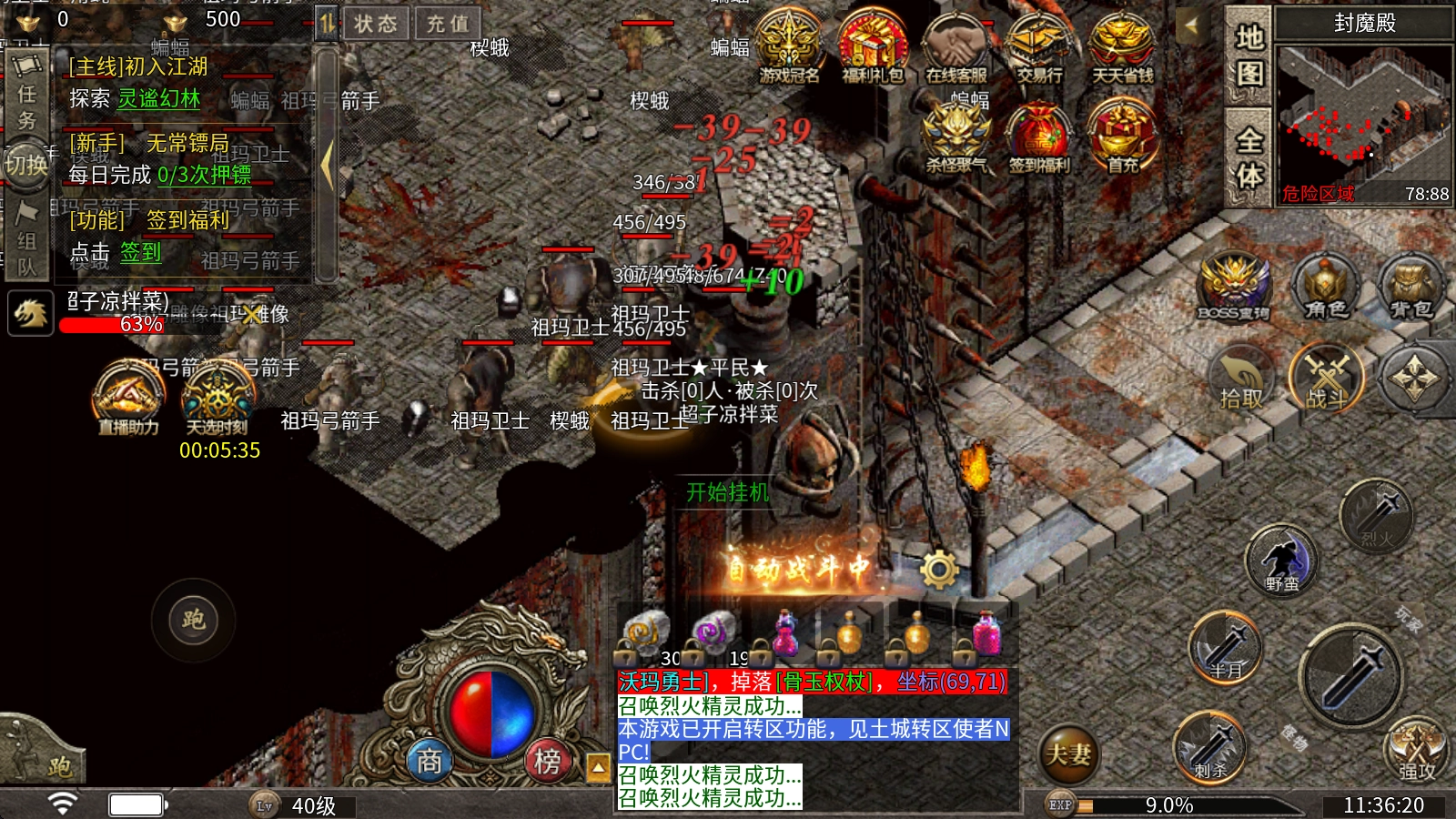 达到40级后就能进入等级专属地图打宝啦,这里的爆率特别高!祖玛、赤月之类的好装备轻松就能拿到手。还有无常镖局,能获取大量经验,性价比可是相当高的!