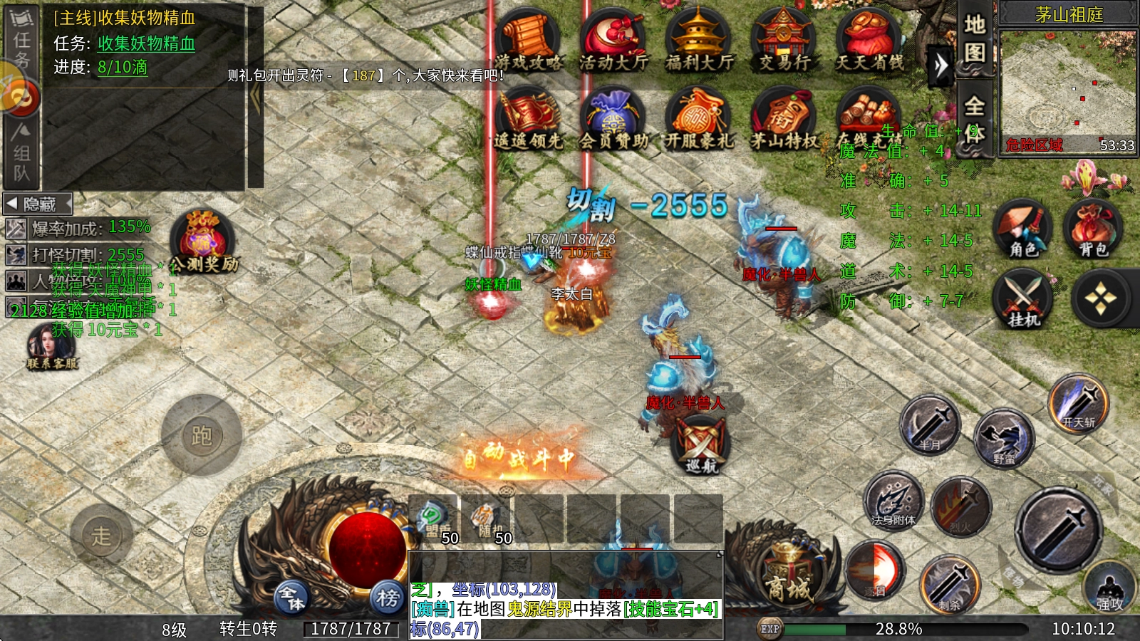 在本服务器里,切割属性的主要获取途径是切割法器。切割法器本身配备了法身附体技能,激活该技能能够提升角色自身的各项属性。不过在法身附体的状态下,会不断消耗灵气值,而灵气值可以通过击杀怪物来获取。