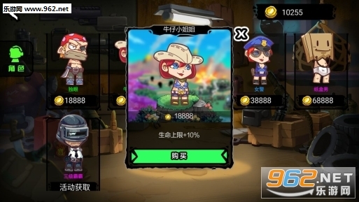 点击皮肤,进入角色商店,内测版一共推出了16个角色。其中5个免费,5个售价8888金币,2个18888金币,2个38888金币,1个68888金币,还有1个是活动奖励角色。之所以单独把这些拿出来说,是因为这些需要付费的角色都带有属性加成哦——比如下面图里的牛奶小姐姐,购买后在战场上能获得10%的生命上限加成,这难道不是在用“生命”战斗吗?我总觉得这类带属性加成的设定会影响游戏平衡,你怎么看?不过看了也没法反驳我就是了~
