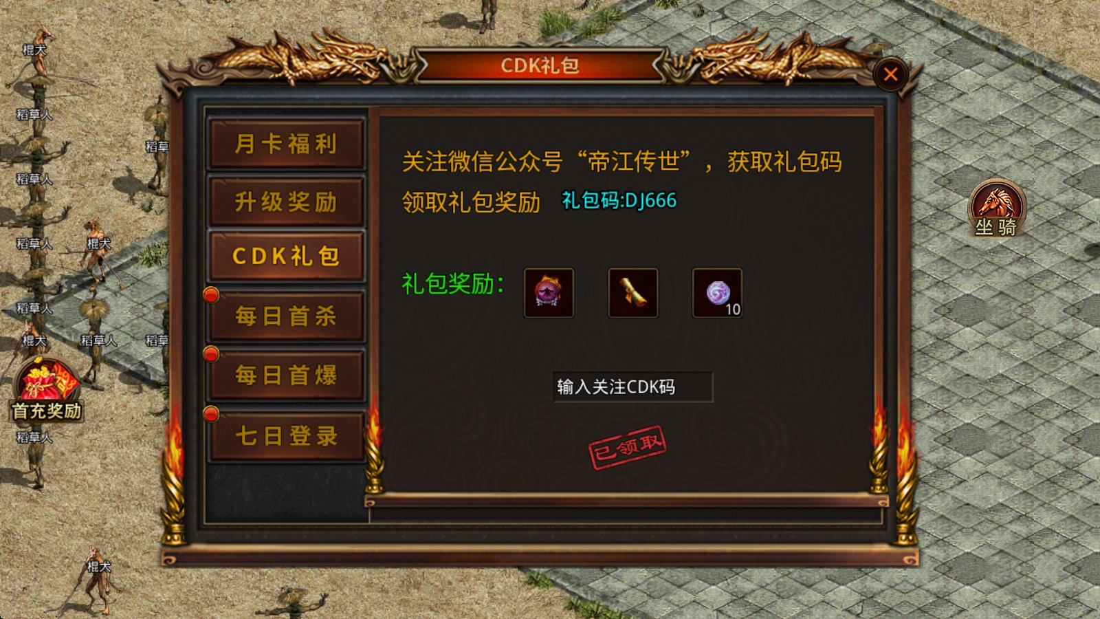 新手还能持续领取升级奖励、每日首杀、每日首爆等惊喜福利,装备、道具、元宝一应俱全,助力你前期轻松发育。