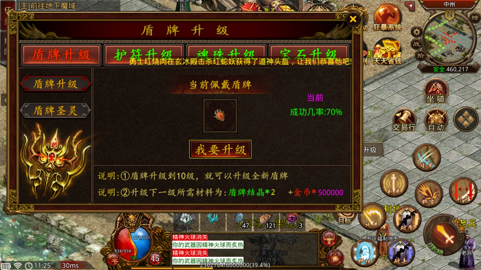 附件升级规则:只需消耗对应的材料,就能对盾牌、护符、魂珠这类附件进行升级操作。