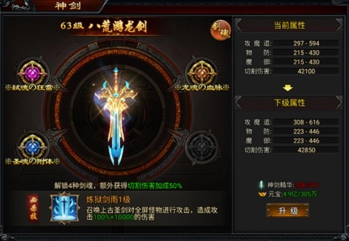 这是游戏里相当关键的一个系统。对神剑进行升级后,能显著增强对应角色的属性以及特殊切割伤害属性,以此来提升战斗力,而且神剑还具备独特的专属必杀技、被动技能和剑魂。