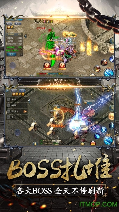 想不想拥有顶级神装?想不想成为全服霸主?全服高级BOSS和个人专属高级BOSS,一个都别错过,尽情挑战,全屏掉落珍稀宝物!