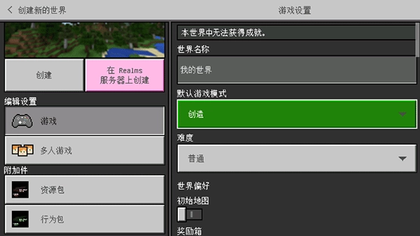 点击“新建”按钮,即可进入创建新世界的界面;另外,你也可以直接加入他人的世界,体验各类热武器带来的游玩乐趣。