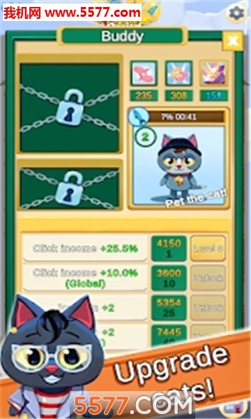 无论你在游戏里频繁上线,你的猫咪都能为你的大亨产业赚取免费的工作资金。