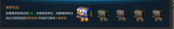 所有宝箱的奖励类型相同,但段位越高,能获得的奖励品质就越好。奖励的发放规则是:以一周作为一个赛季周期,每个赛季结束后,系统会依据玩家当前的段位来发放对应的奖励。
