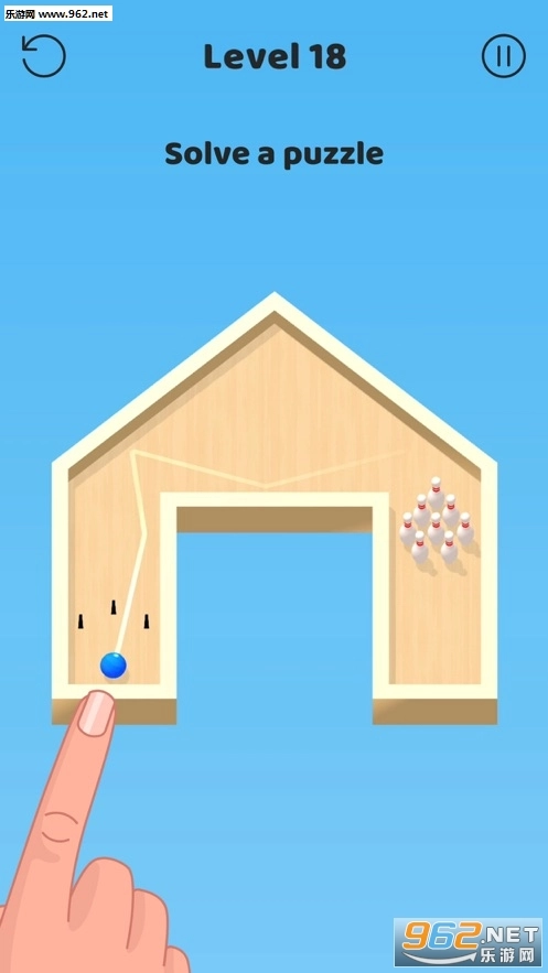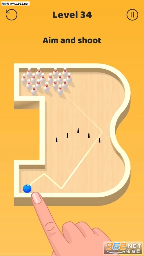 用手指操控保龄球展开击打玩法,在不规则的场景里借助物理反弹击倒所有目标,完成任务后解锁新关卡!