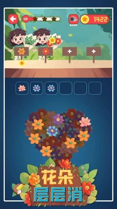 花朵层层消是一款三消闯关类的休闲游戏,玩家在游戏里能给每位客人送上三朵颜色各异的小红花,只有成功消除后才会出现下一位客人。大家要灵活运用观察力,去发现隐藏在下方的花朵,体验不一样的乐趣,快来一起看看吧!