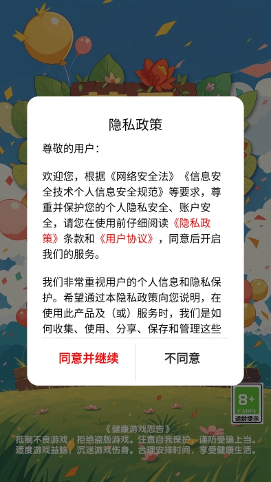 玩家们仍需确认游戏关于收集个人信息的声明,点击同意并继续后,即可进入游戏。