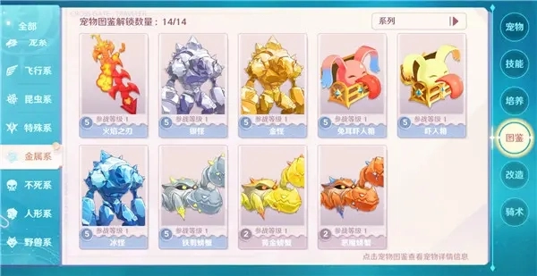 金属系宠物常让人联想到金怪、宝箱怪这类形象,它们普遍拥有出色的防御能力,不管是物理攻击还是魔法伤害,都能从容应对。