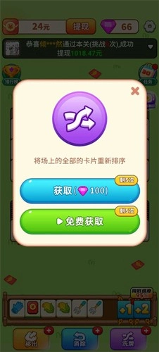 在游戏界面的下方区域,我们为玩家精心准备了一系列实用的辅助道具,包括重新排序、一键消除、智能移位等功能。这些道具能够帮助你更轻松地应对游戏中遇到的各种挑战和难关。它们的效果十分出色,绝对是你在游戏中过关斩将、取得胜利的得力助手。