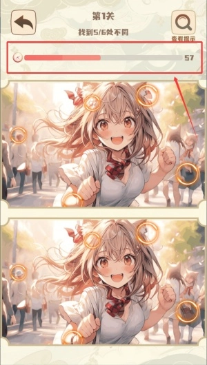 请格外留意界面顶部飞速递减的倒计时进度条,务必在限定时间内完成所有差异的查找。