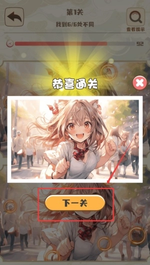 成功通过本关后,请立刻点击右下角的“下一关”按钮,继续挑战难度更高的全新找茬关卡。