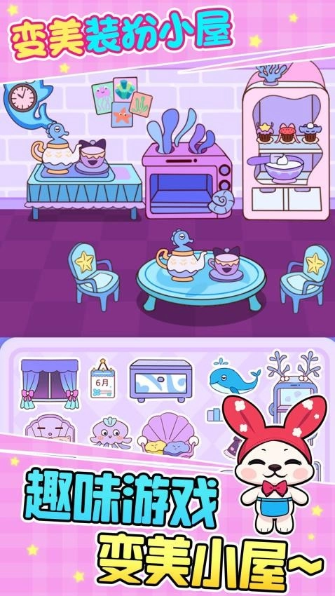 变美妆扮小屋是针对年轻女孩打造的手机游戏。在游戏里,玩家能够设计并装点自己理想中的小屋,还能挑选各式各样时髦的服饰与化妆品,来打造专属的个人形象。游戏提供了多样的服装和装饰选择,玩家也可以把自己的设计成果分享给好友。