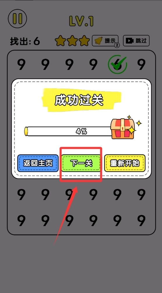 成功通过当前关卡后,点击界面右下角的“下一关”按钮即可开启新的挑战。随着关卡难度逐步增加,系统会解锁更为复杂的文字谜题,为玩家带来源源不断的新鲜感和满满的成就感。