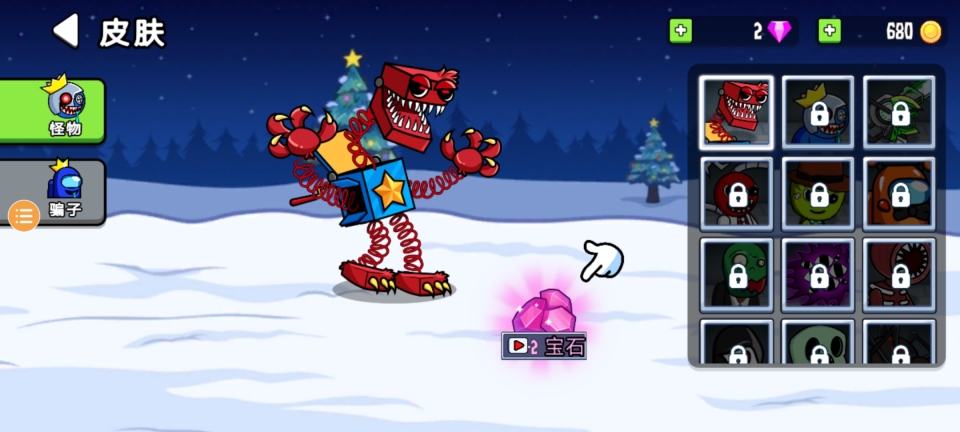 在主页面点击【角色】,若你想要为怪物更换皮肤,可使用宝石进行兑换。