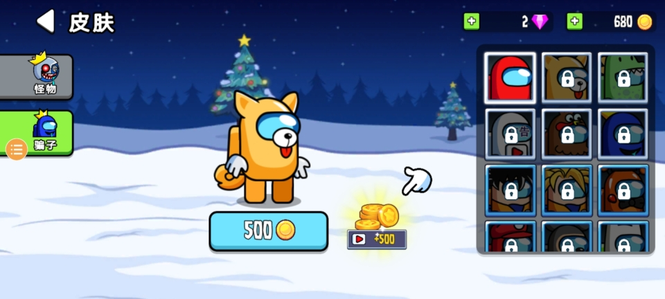 这个小黄狗既能用500金币兑换,也能通过观看视频赚取500金币来获取,用它就能兑换皮肤啦!