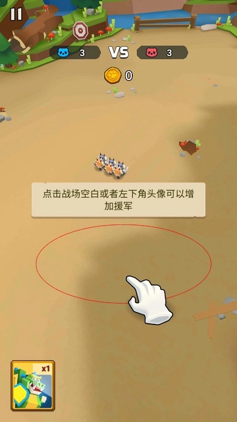 点击战场空白区域或左下角头像可召唤援军。援军的及时增援是扭转战局的关键,需合理运用。