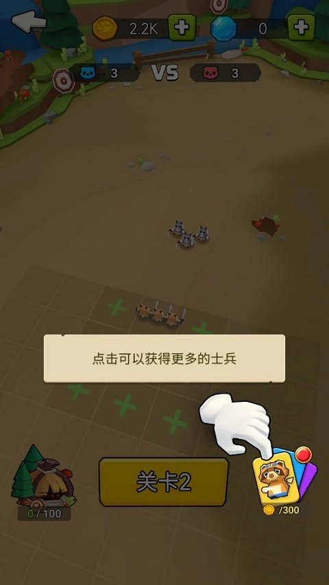 接下来要介绍的是进阶玩法,在开场对战前按照图中指示操作,就能获得更多士兵,不过这需要消耗金币来解锁。