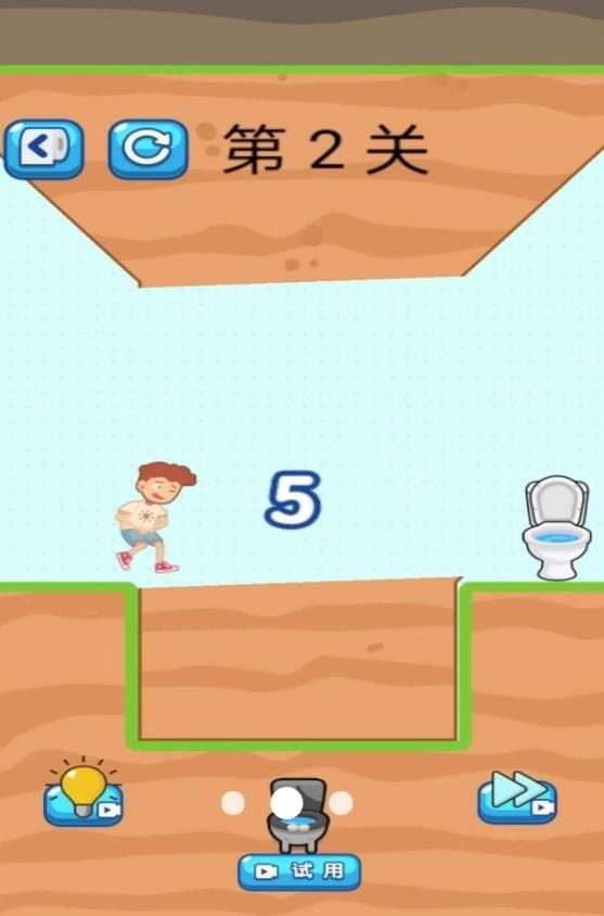 完成任务的条件是:玩家需要留意画线的方向与尺寸,通过填补缺口抵达厕所来完成挑战,如此方可解锁下一关。