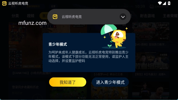 云视听虎电竞功能版块非常多,大家可以直接左右滑动顶部导航条来进行切换。设置里面可以切换为青少年模式,支持全屏观看,也可以直接搜索想要观看的内容。