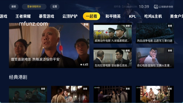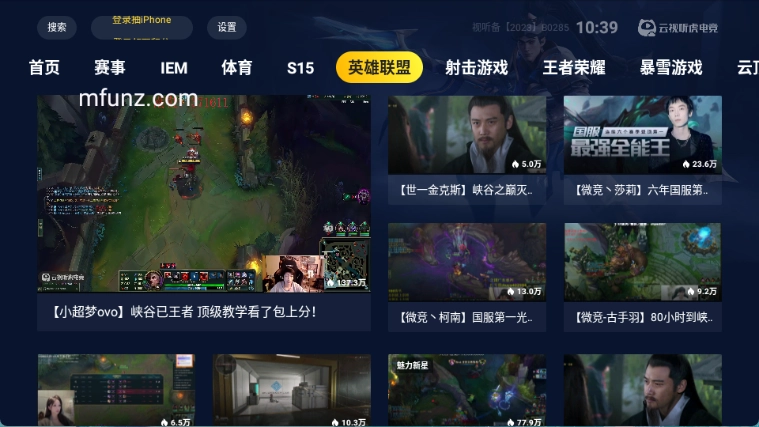 云视听虎电竞是虎牙直播打造的TV电视端应用,也就是大家常说的虎牙TV版,是专门面向智能电视与电视盒子用户推出的。这款应用功能十分丰富,不仅覆盖了赛事、iem、体育、s15、英雄联盟、射击游戏、王者荣耀等热门游戏的解说视频,还设有一起看频道,该频道主要用于提供影视剧观看服务。