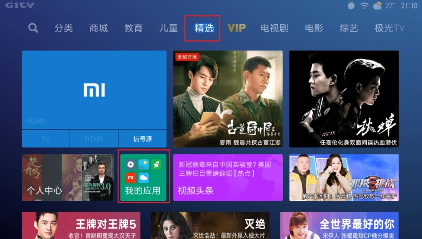 2.首页点击“应用”->“我的应用”->“高清播放器”,找到云视听虎电竞安装即可。