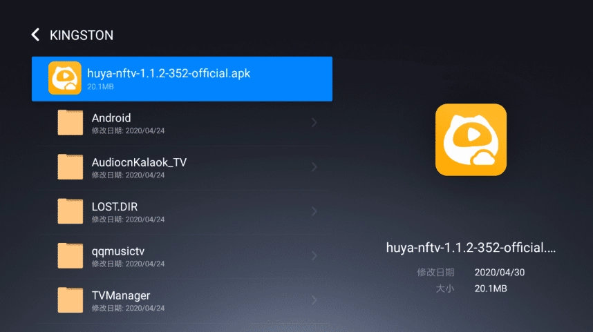 方法二:使用U盘安装,将好的apk安装包拷贝到U盘中,插入电视后找到安装包进行安装。