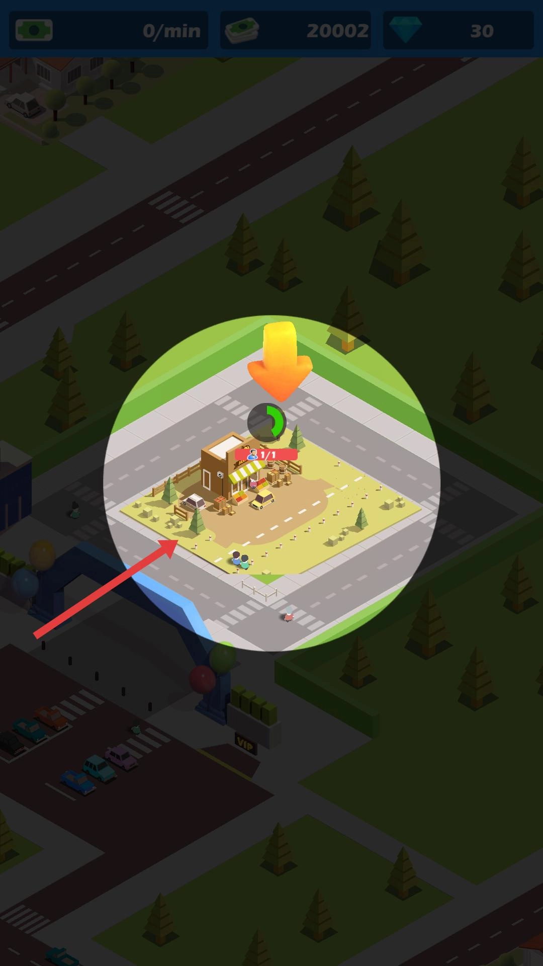 按照箭头指示,点击被圈出的建筑,查看其详细信息,完成接待客人或与建筑相关的操作,以此获取资源,提高收益。