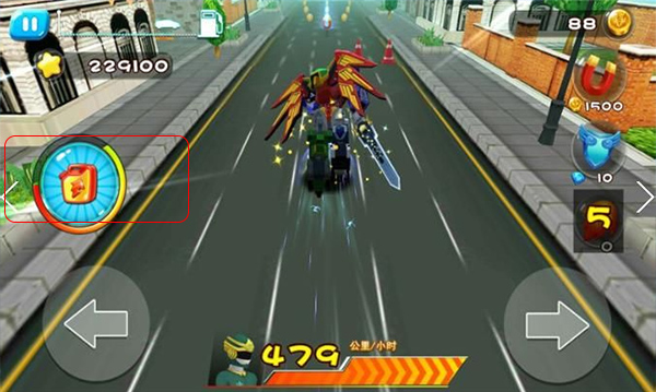 点击左右方向键可以操控赛车转向,或者通过滑动屏幕的方式也能让赛车移动,另外在界面右侧还配备了可供使用的道具。