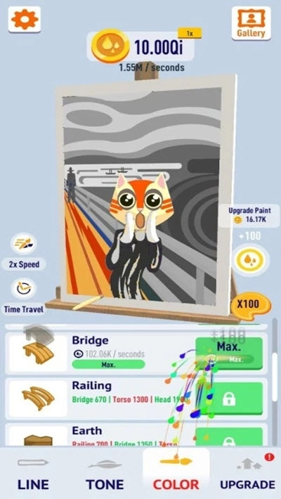 这是一款以艺术为主题的休闲放置类游戏,无论谁都能化身绘画大师,在经典名作之上随心涂鸦,尽情挥洒创意。