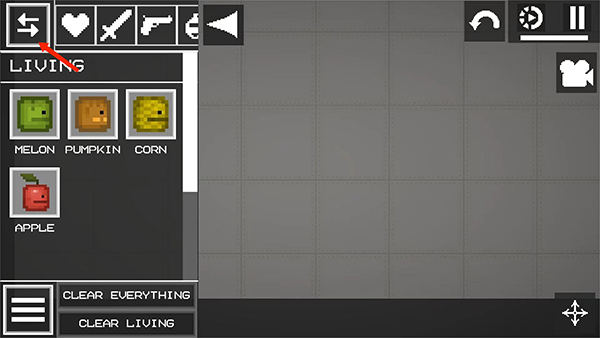 启动melon playground游戏,进入游戏主界面后,点击左上角的【四宫格】图标。