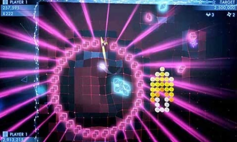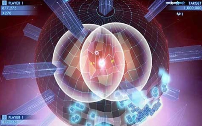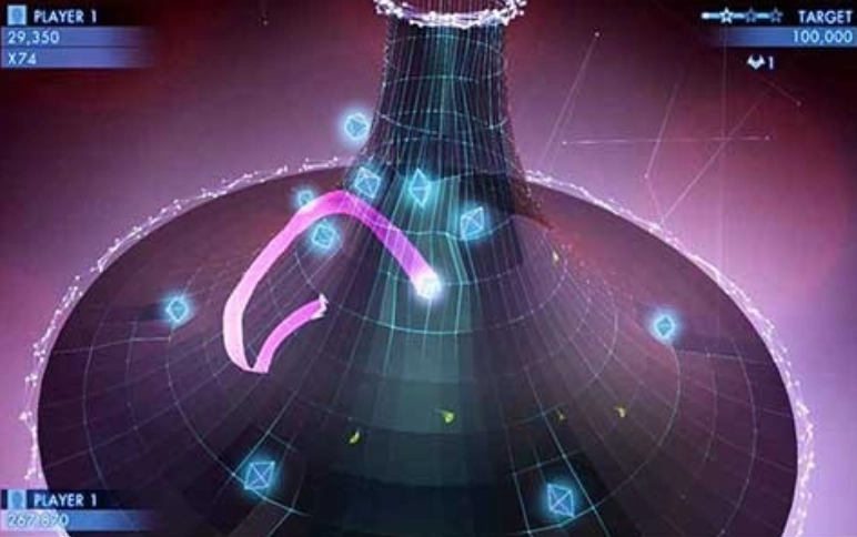 这部作品延续了几何战争的风格特点,把关卡直接设计成超现实主义的扭曲空间,由此带来了不少意想不到的随机性与惊喜。