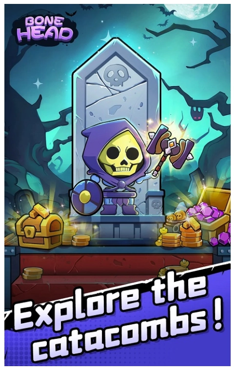 玩家化身一只小骷髅,在冒险中挖掘宝藏、收集装备以不断变强,最终目标是成为骷髅王。旅途里会遭遇诸多危险,必须谨慎躲避,不然就会损耗生命值;而获取装备则能助力角色完成升级。