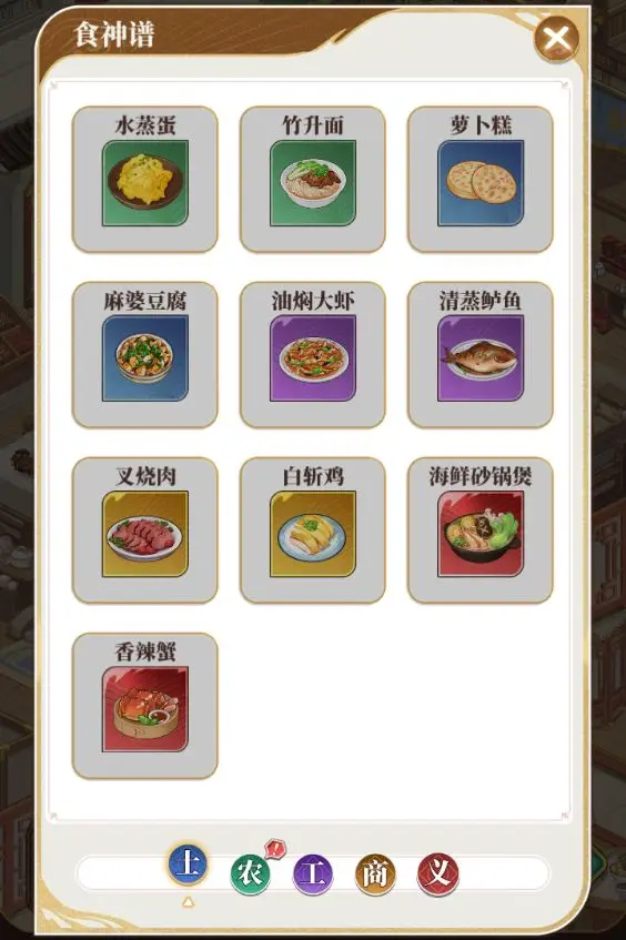 客栈除了提供住宿,还得给每位住客准备一日三餐,所以食物制作是必不可少的环节。在游戏里,我们还设计了一系列美食食谱。